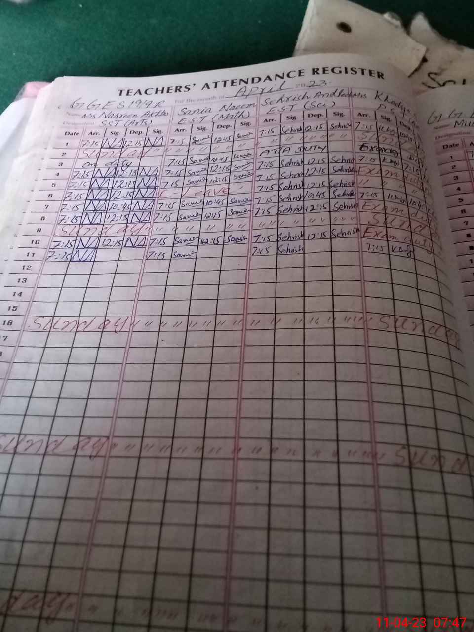 | Monitoring Date: 11-04-2023 | Start Time: 11-04-2023 07:42 AM | End Time: 11-04-2023 08:29 AM | Name of MEA: MU**** SA**** AK**** 13**** | |