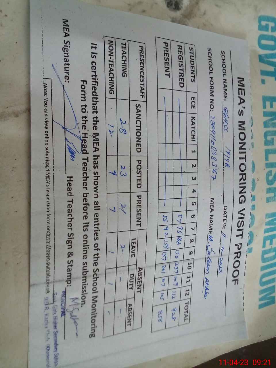 | EMIS Code: 36420054 | Name of School: GGHSS 19/9-R, KACHA KHUH | |||