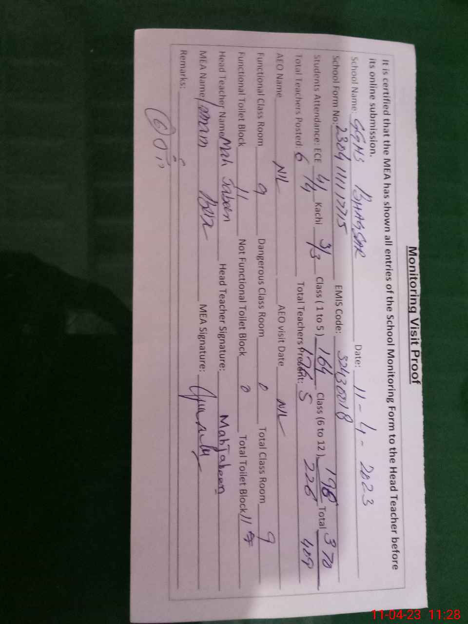 | Certified that this School was Inspected by the Undersigned MEA/DMO Today and the Information Stated Above is as Per Record. | |||||