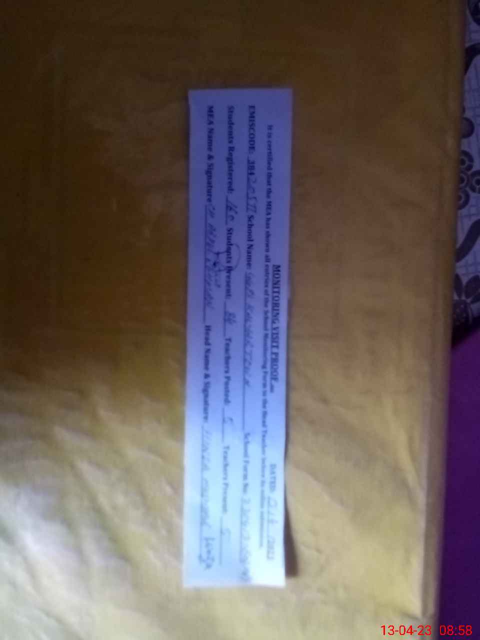 | Attendance Register | Head Teacher | MEA with School | Visit Proof |