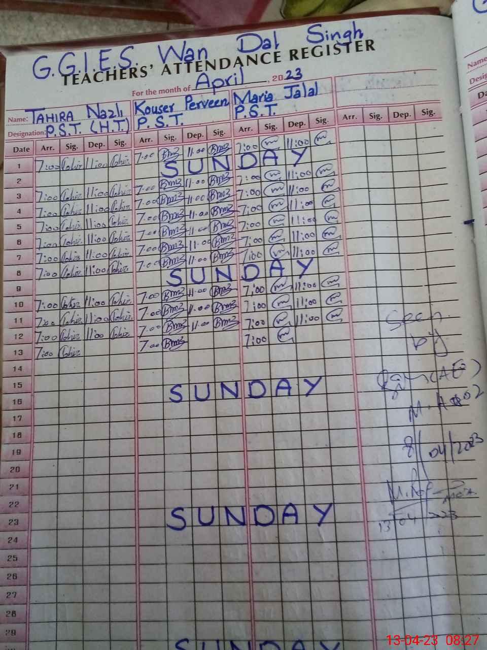 | Name: TA**** NA**** Designation: (School Headmaster's/Headmistress's) PST Phone/Cell Number: 03**** |