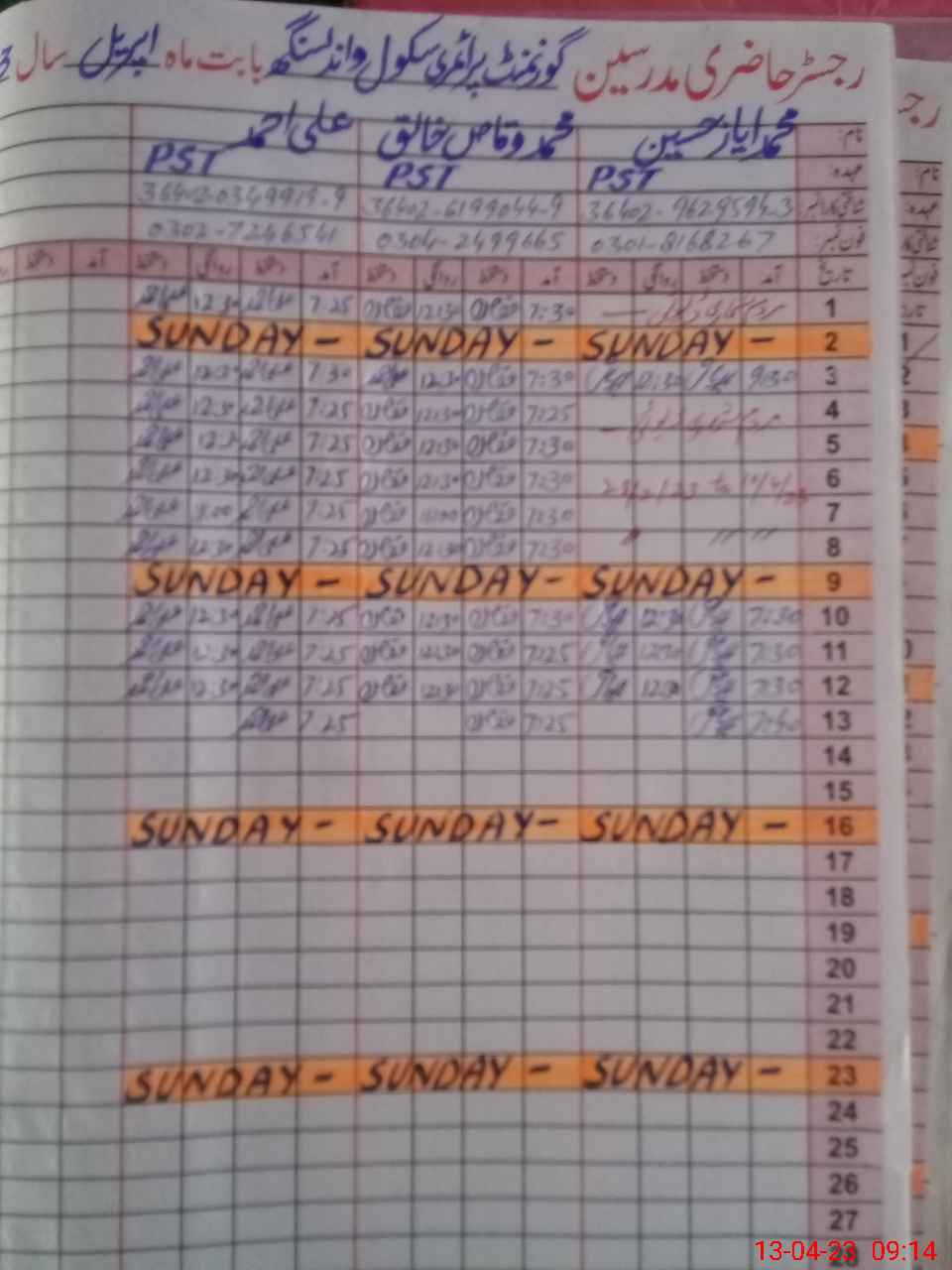 | Name: Al**** Ah**** Designation: (School Headmaster's/Headmistress's) PST Phone/Cell Number: 03**** |