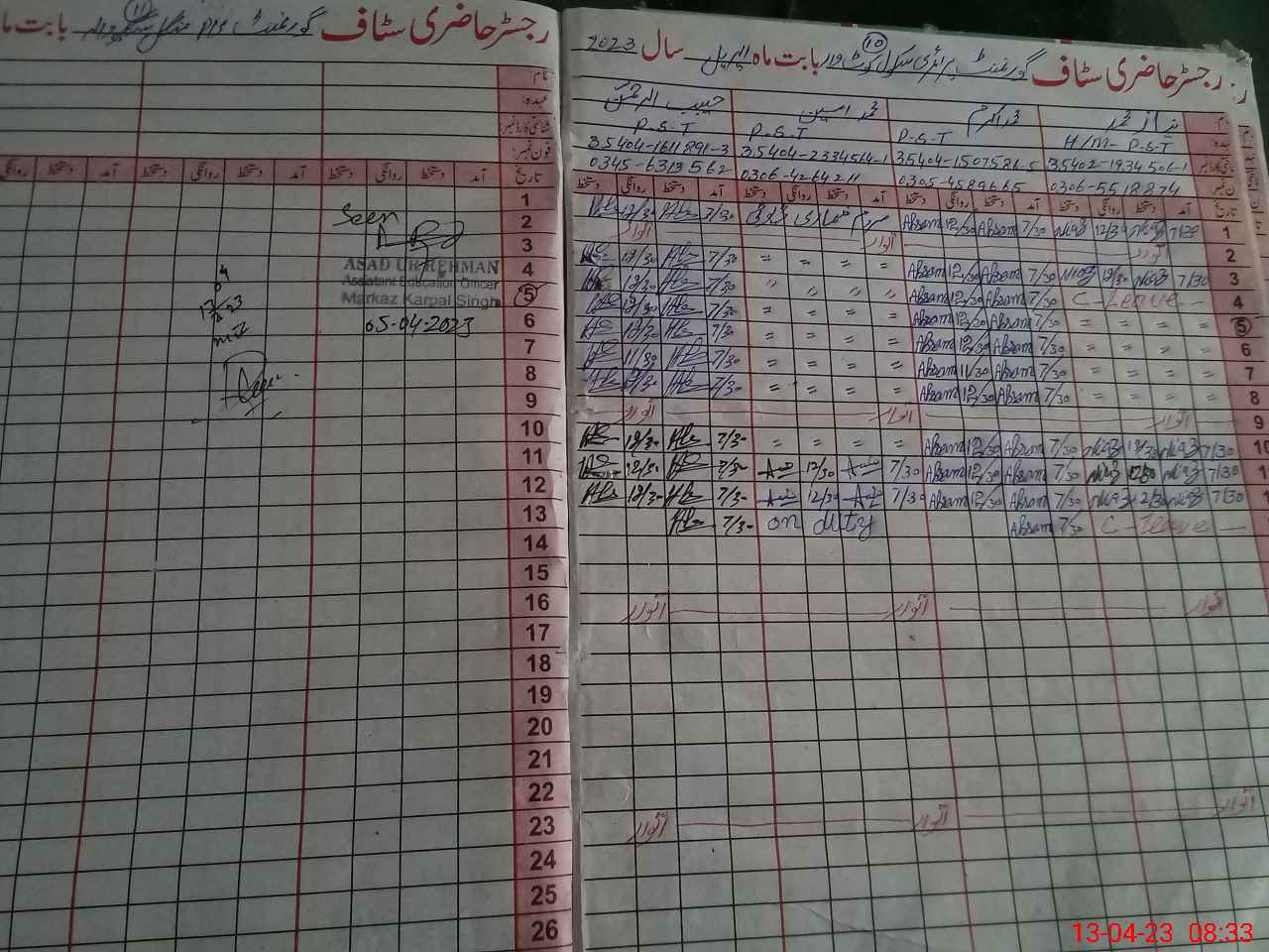 | Name: Mu**** Am**** Designation: (School Headmaster's/Headmistress's) PST Phone/Cell Number: 03**** |