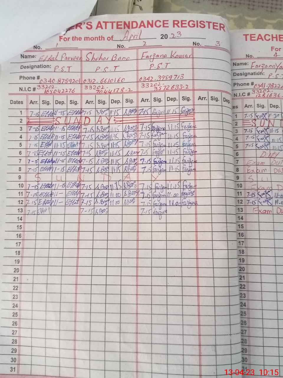 | 33**** | Fa**** Ya**** | PST | Regular | 0 | 0 | 0 | 0 | 0 | 0 | 0 | 0 | 0 | Exam Duty |