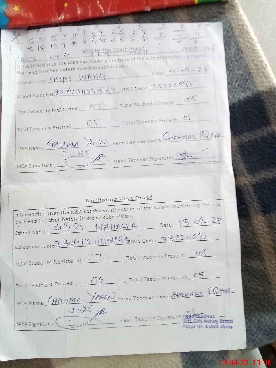 | EMIS Code: 33220692 | Name of School: GGPS WAHGA | |||