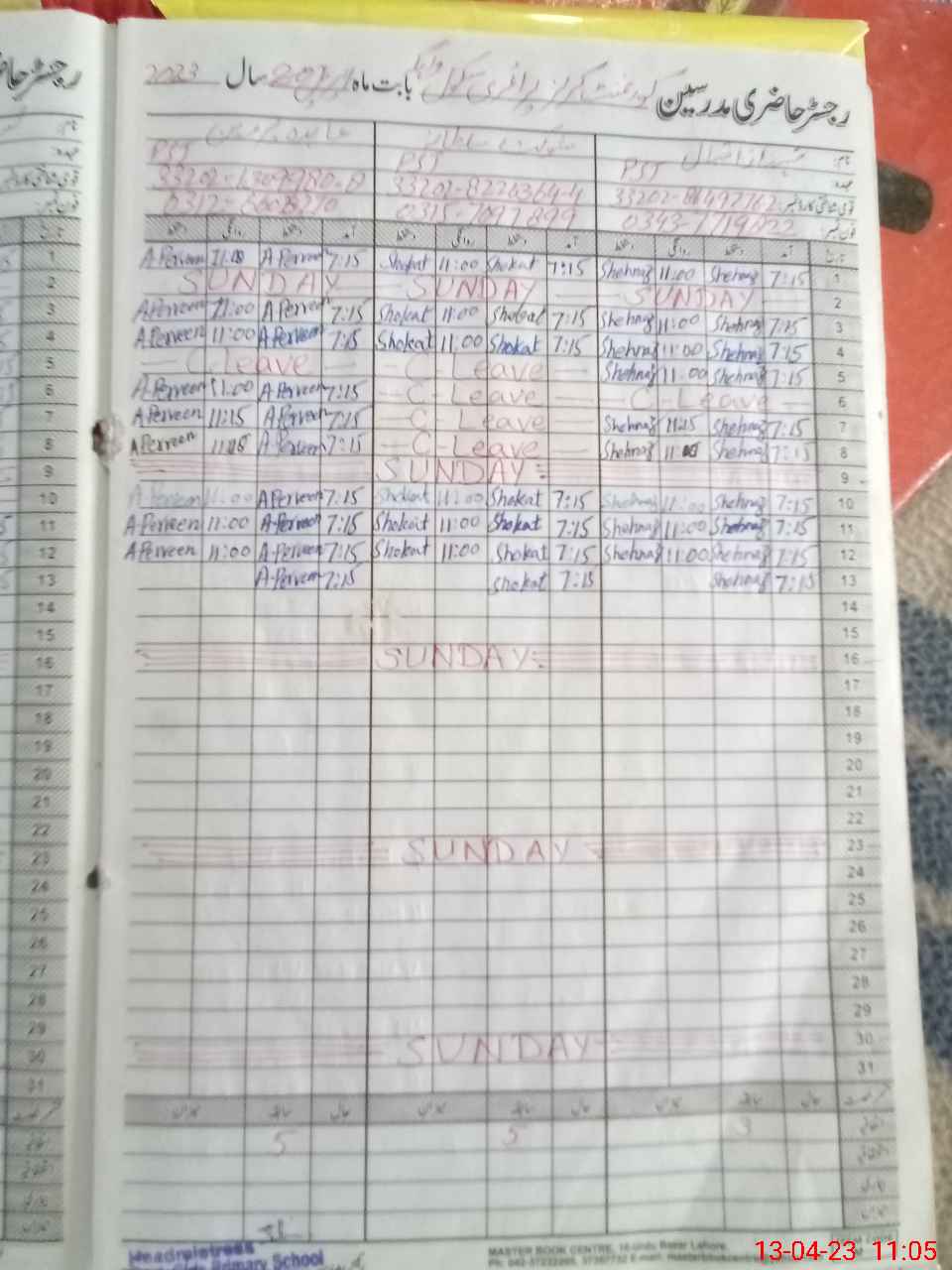 | Name: Sh**** Iq**** Designation: (School Headmaster's/Headmistress's) PST Phone/Cell Number: 03**** |