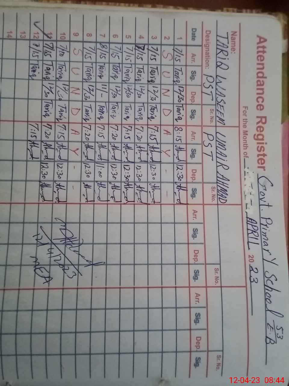 | Name: TA**** WA**** Designation: (School Headmaster's/Headmistress's) PST Phone/Cell Number: 03**** |