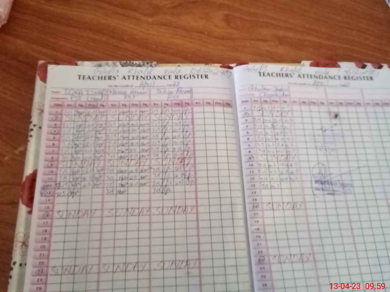 | CNIC | Full Name | Designation | R/C | Absence During Last Calender Month |