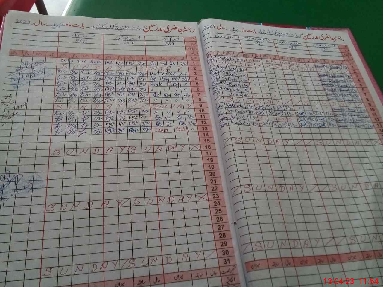 | 35**** | Qa**** Na**** | PST | Regular | 0 | 0 | 0 | 0 | 0 | 0 | 0 | 0 | 0 | Exam Duty |