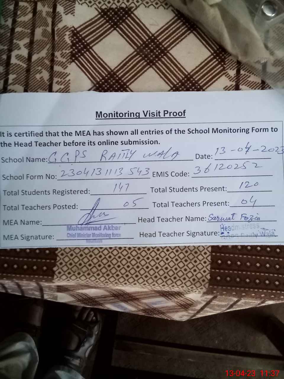 | EMIS Code: 36120252 | Name of School: GGPS RAYTLI WALA CHAH RATLI WALA SHUJABAD | |||