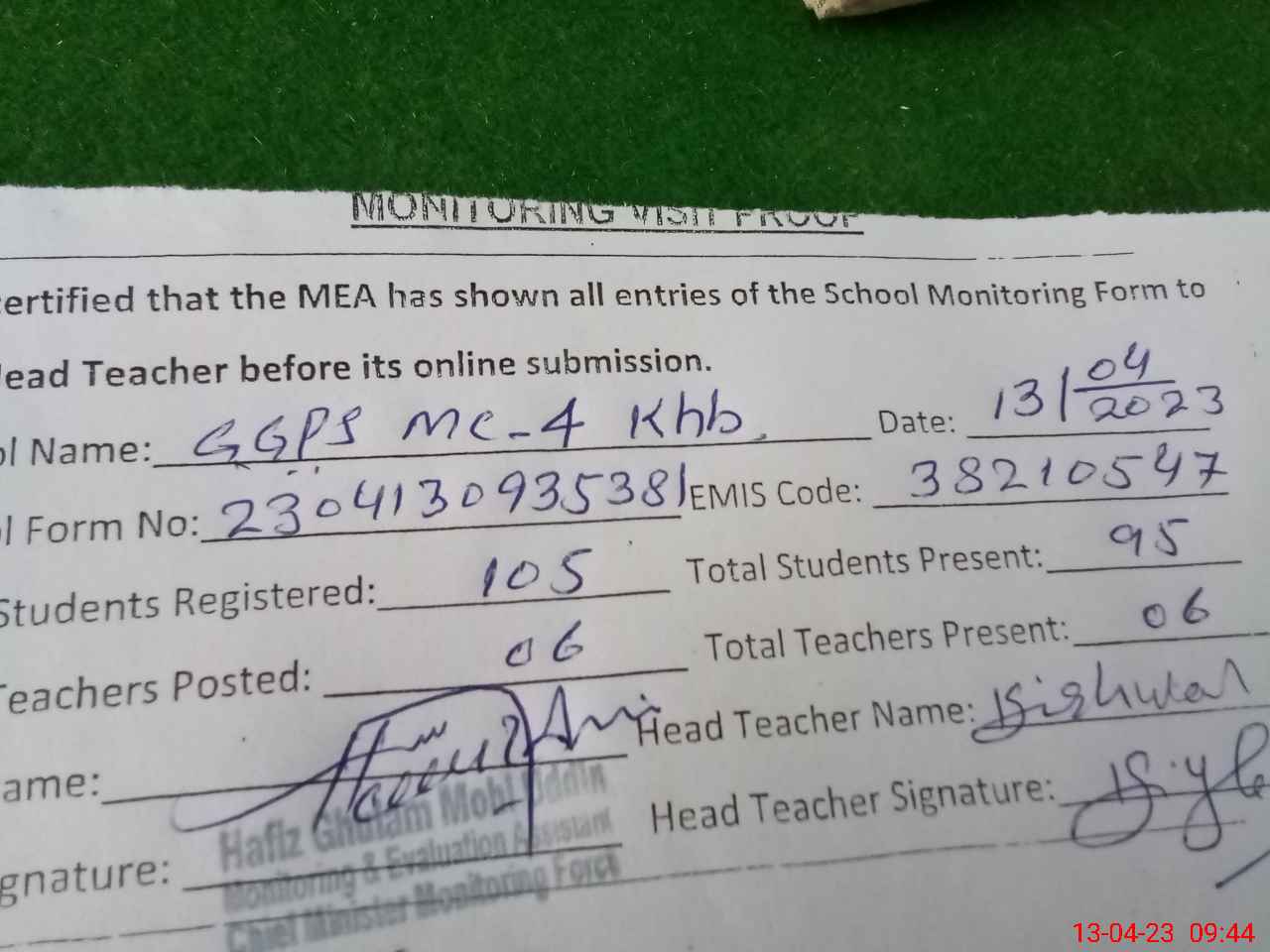 | EMIS Code: 38210547 | Name of School: GGPS MC NO. 4 KHUSHAB | |||