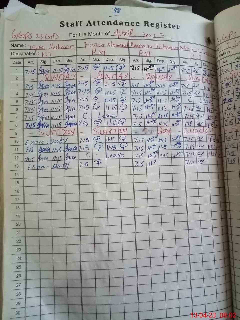 | 35**** | Iq**** Mu**** | ESE | Contract | 0 | 0 | 0 | 0 | 0 | 0 | 0 | 0 | 0 | Exam Duty |