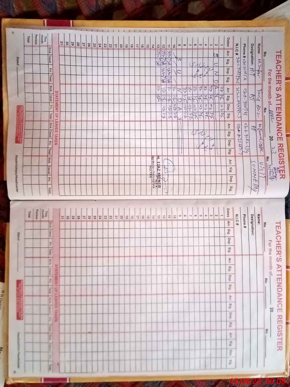 | Name: Ab**** Ra**** Designation: (School Headmaster's/Headmistress's) PSSP Phone/Cell Number: 03**** |