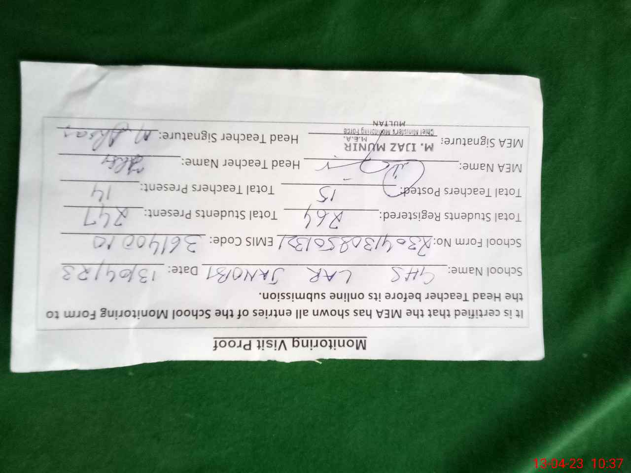 | Certified that this School was Inspected by the Undersigned MEA/DMO Today and the Information Stated Above is as Per Record. | |||||