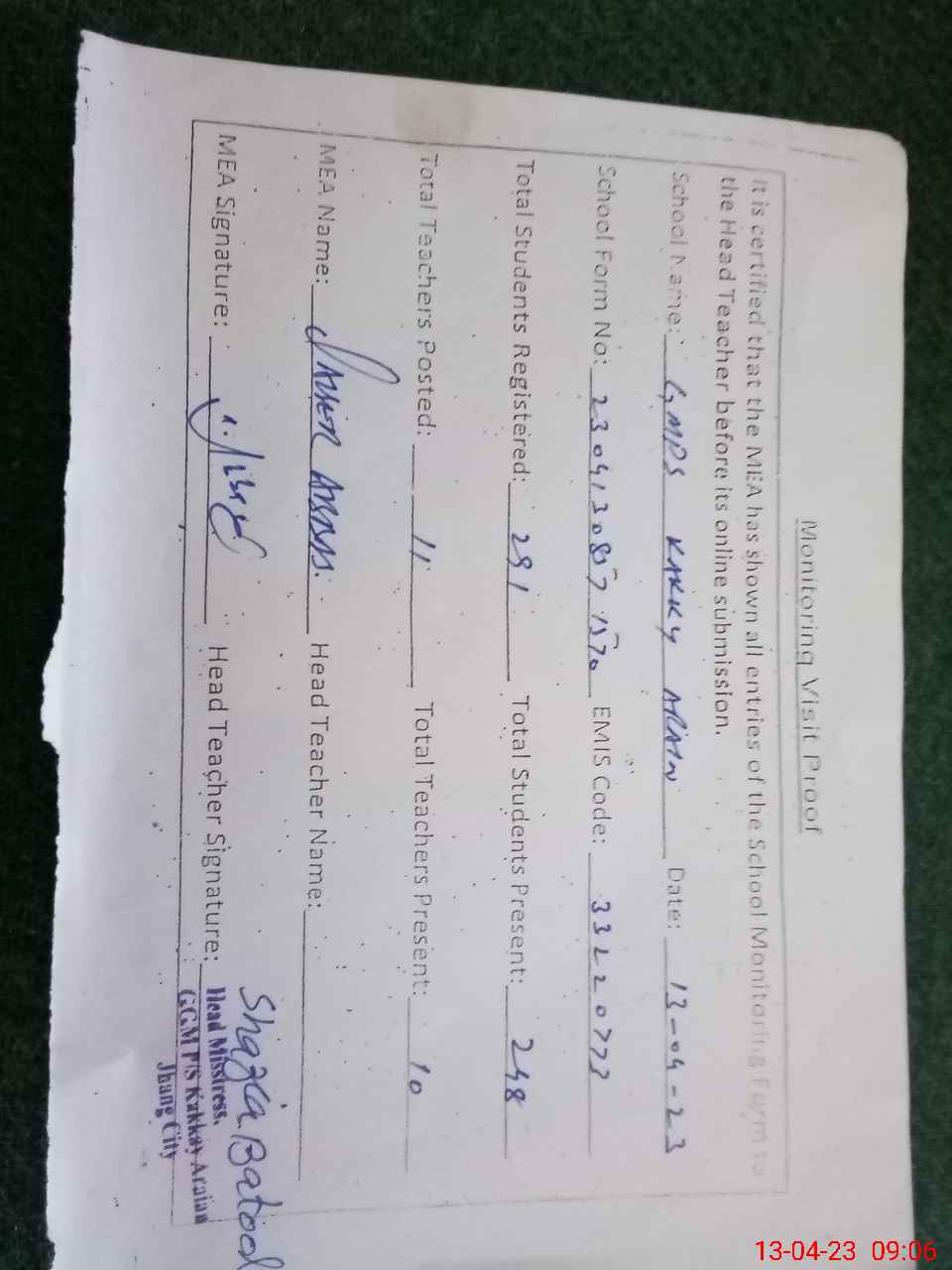 | EMIS Code: 33220773 | Name of School: GMPS KAKKAY ARAIAN | |||