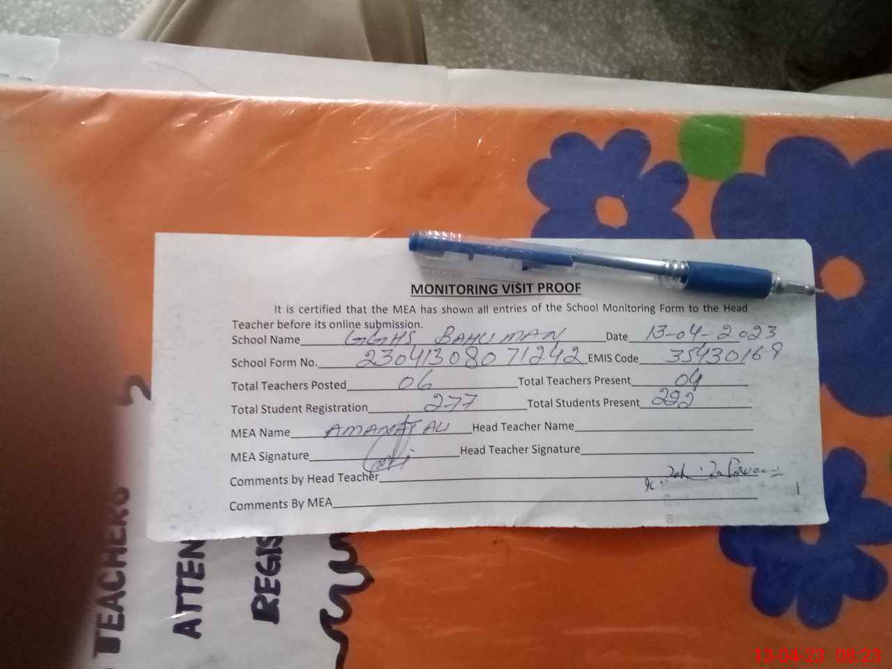 | EMIS Code: 35430169 | Name of School: GGHS BAHUMAN | |||