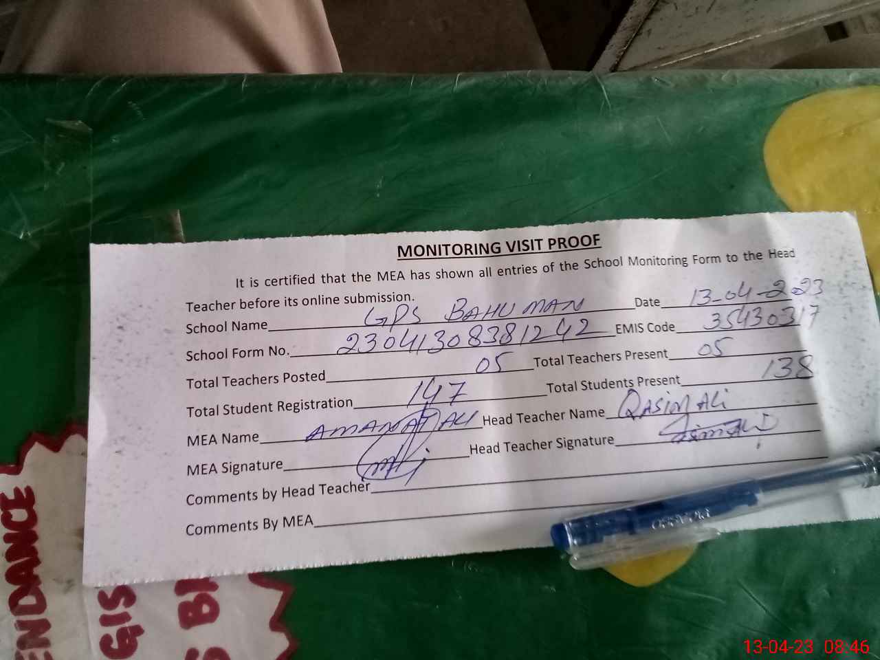 | EMIS Code: 35430317 | Name of School: GPS BAHUMAN | |||