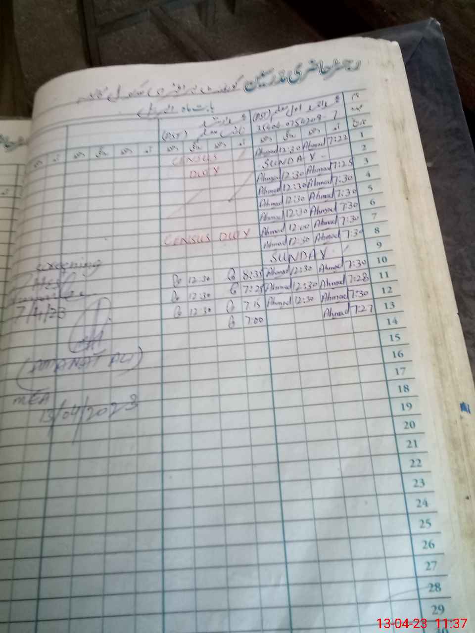 | CNIC | Full Name | Designation | R/C | Absence During Last Calender Month |