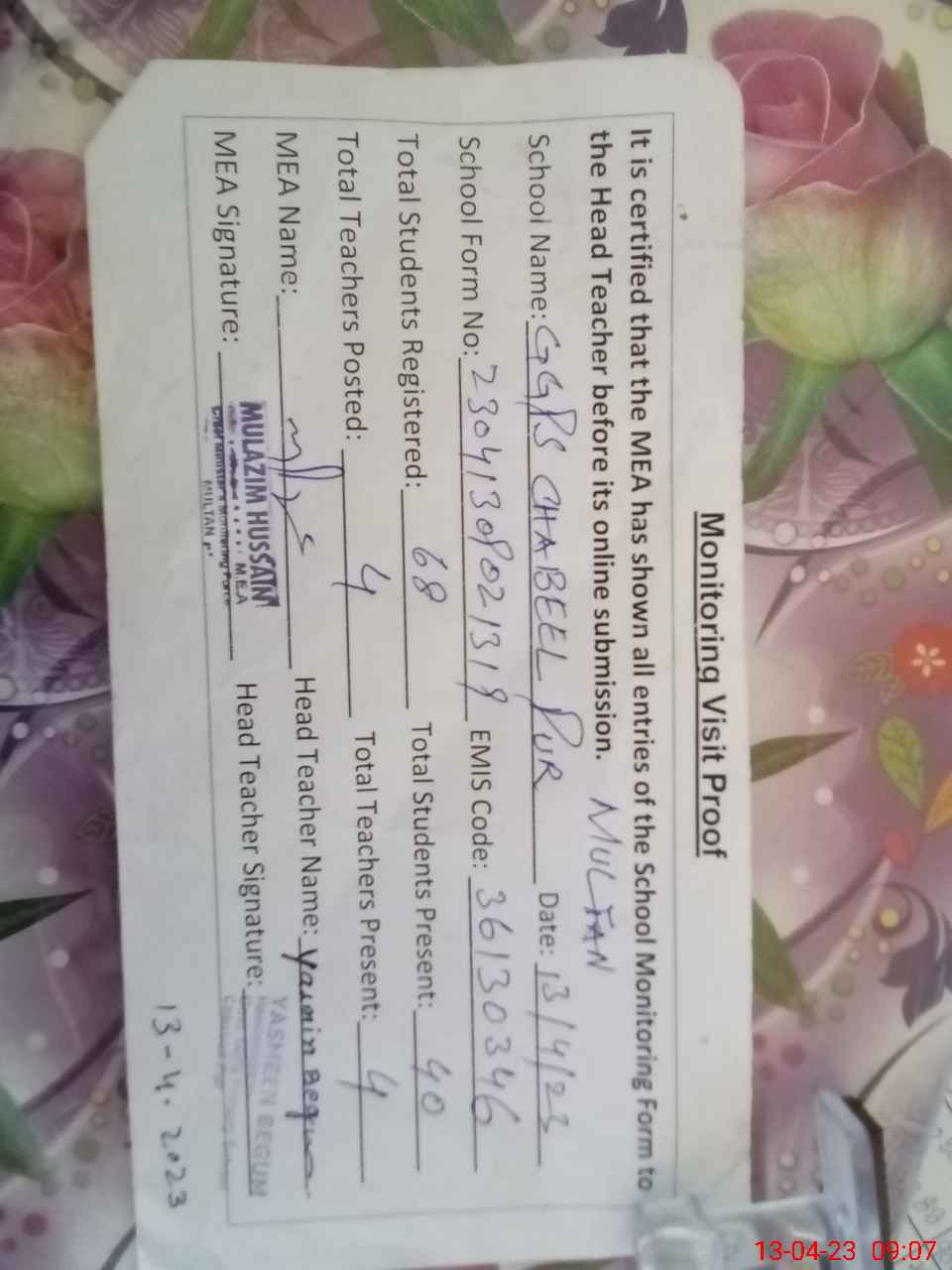 | EMIS Code: 36130346 | Name of School: GGPS CHABEEL PUR SYED WALI KHOI NAWAB PUR ROAD | |||
