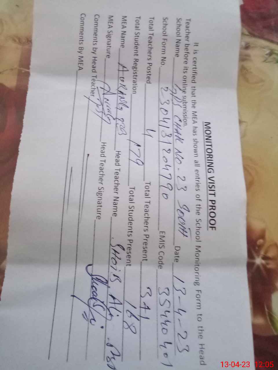 | EMIS Code: 35440401 | Name of School: GPS CHAK NO.23 SOUTH | |||