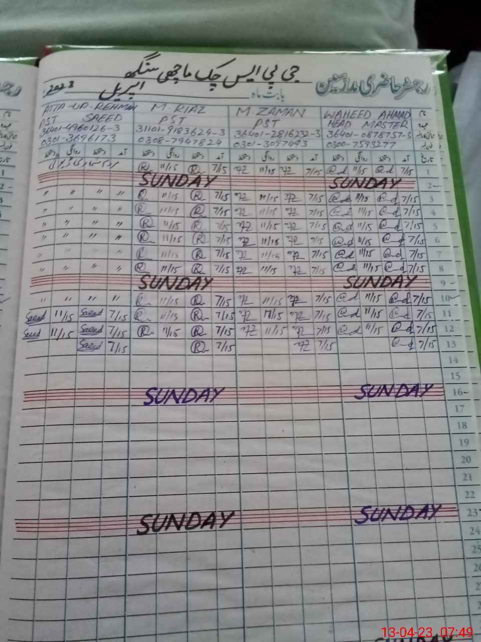 | Name: Mu**** Ri**** Designation: (School Headmaster's/Headmistress's) PST Phone/Cell Number: 03**** |