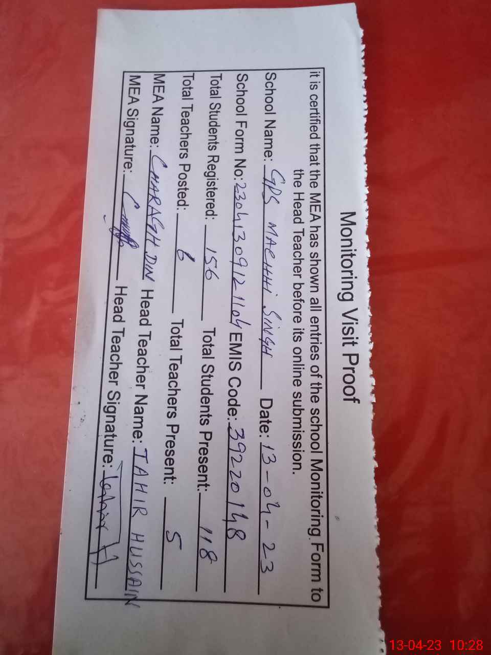 | EMIS Code: 39220148 | Name of School: GPS MACHHI SINGH | |||