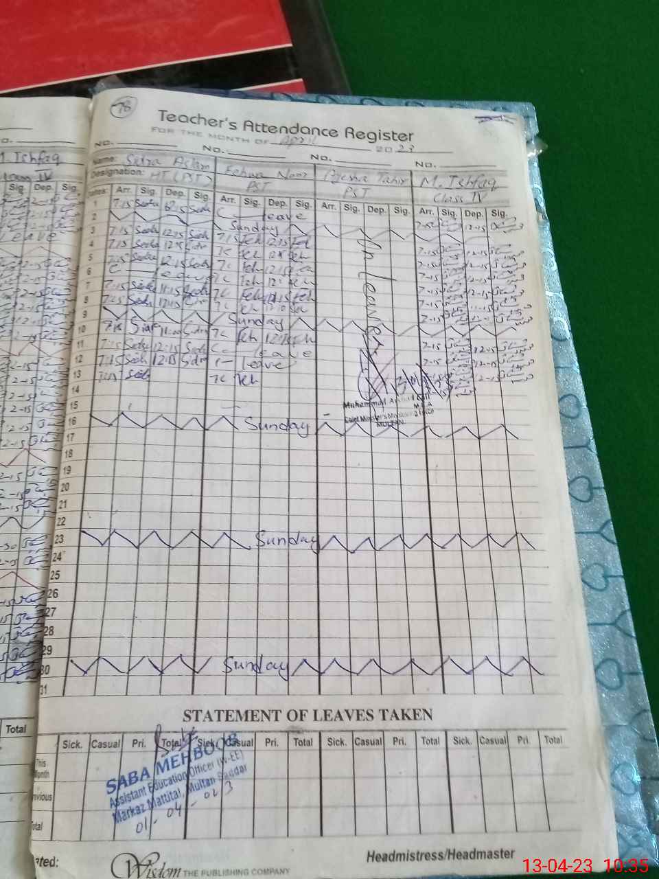 | Leave | Duty | Absent | Maternity | Medical | Ex- Pak |