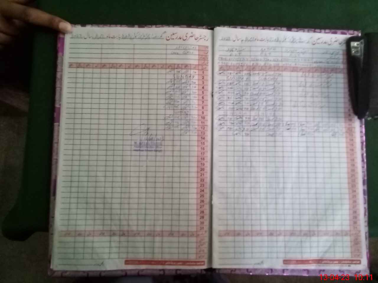 | CNIC | Full Name | Designation | R/C | Absence During Last Calender Month |