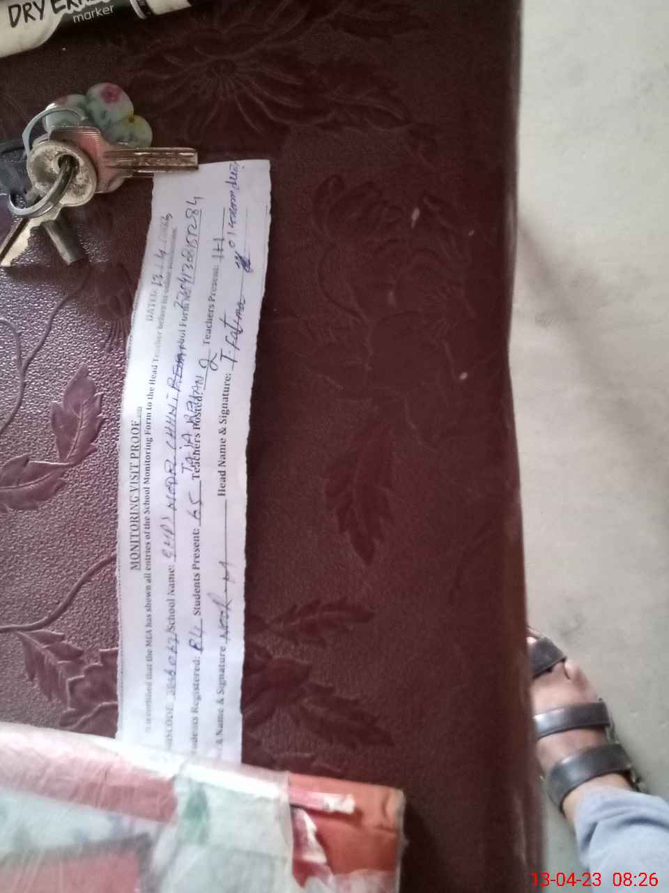 | Attendance Register | Head Teacher | MEA with School | Visit Proof |