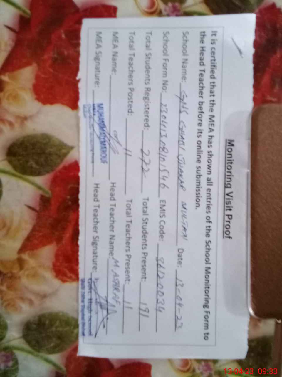 | EMIS Code: 36120034 | Name of School: GHS GHABI JHAKKAR SHUJABAD | |||