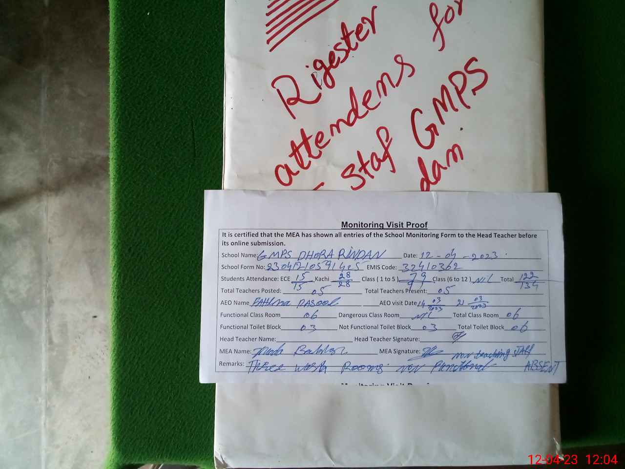 | EMIS Code: 32410362 | Name of School: GGPS DHORA RINDAN | |||