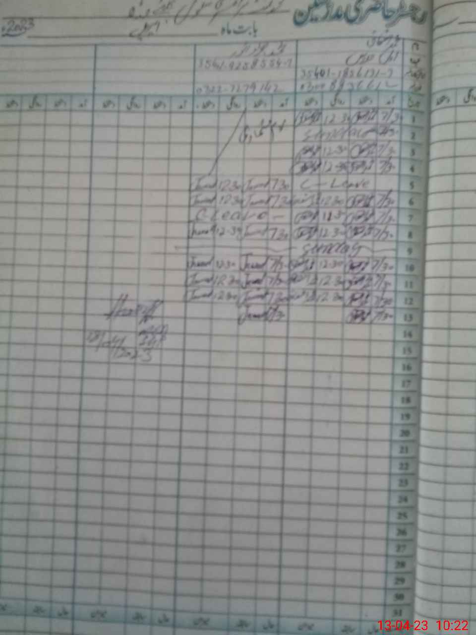 | CNIC | Full Name | Designation | R/C | Absence During Last Calender Month |