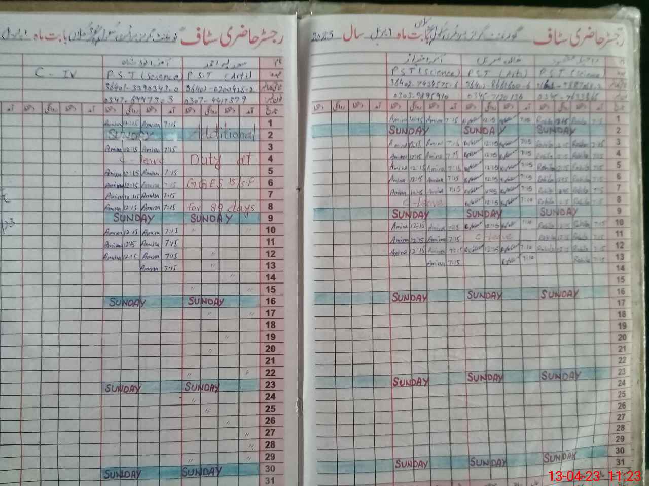 | Name: RA**** MA**** Designation: (School Headmaster's/Headmistress's) PST Phone/Cell Number: 03**** |