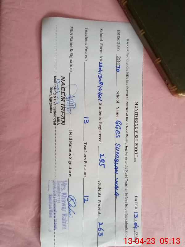 | EMIS Code: 38470710 | Name of School: GGES SUMBLAN WALA | |||