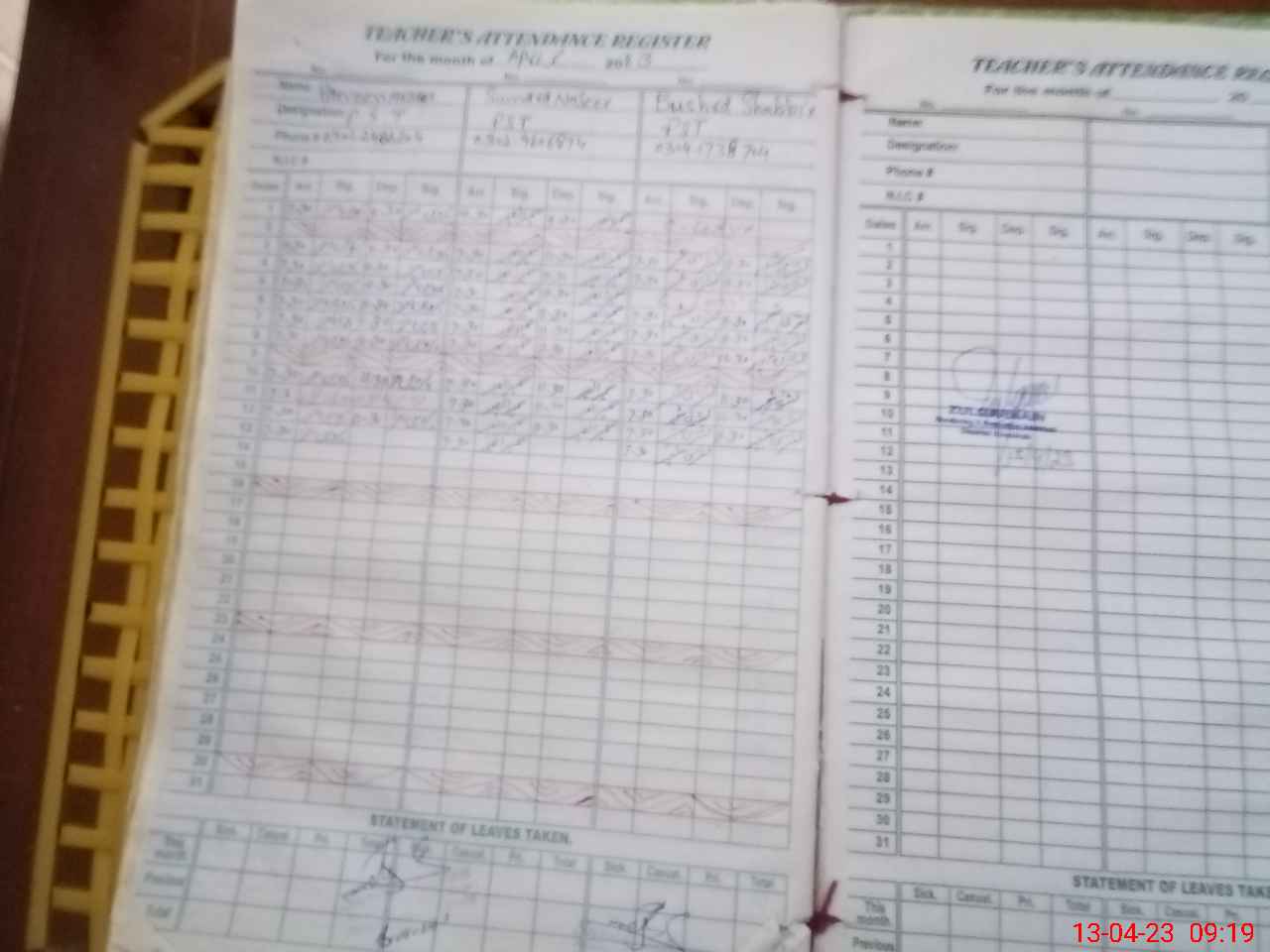 | CNIC | Full Name | Designation | R/C | Absence During Last Calender Month |
