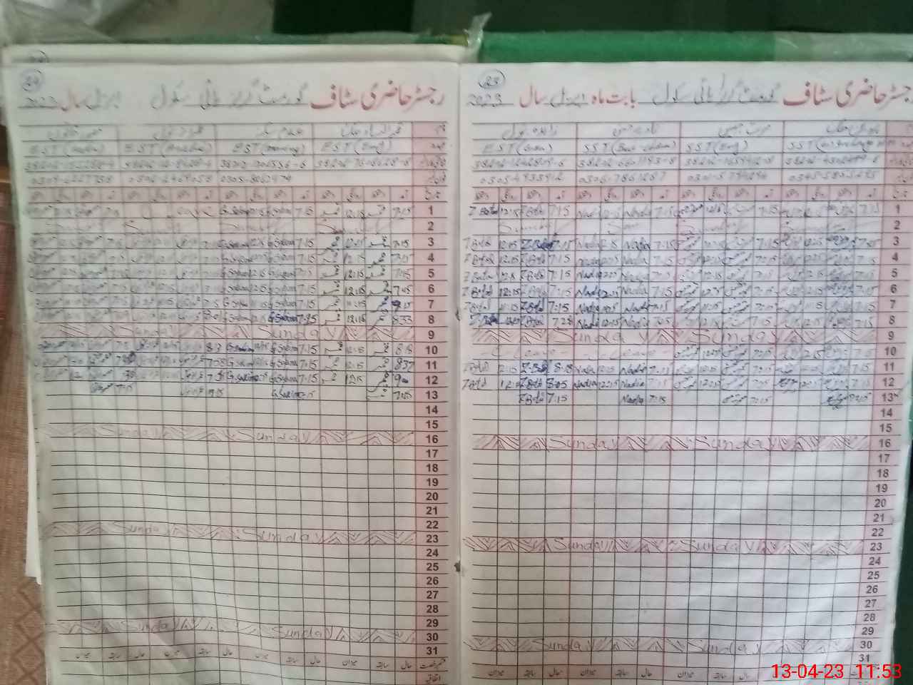 | CNIC | Full Name | Designation | R/C | Absence During Last Calender Month |