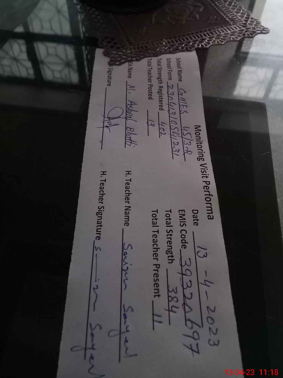 | EMIS Code: 39320697 | Name of School: GMES CHAK 45/3-R | |||