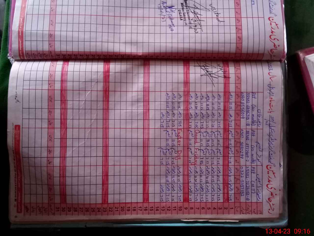| Name: RI**** YA**** Designation: (School Headmaster's/Headmistress's) PST Phone/Cell Number: 03**** |