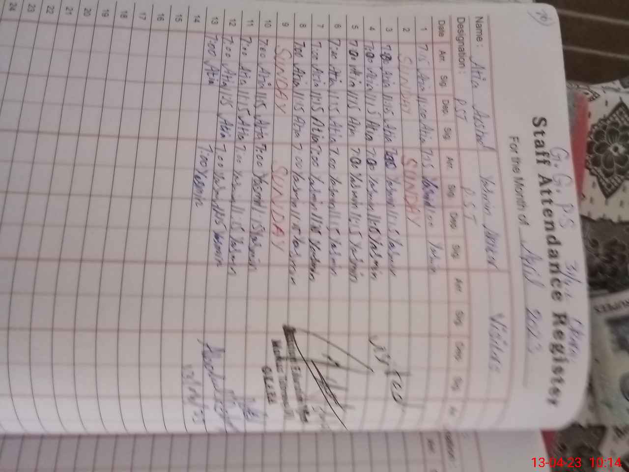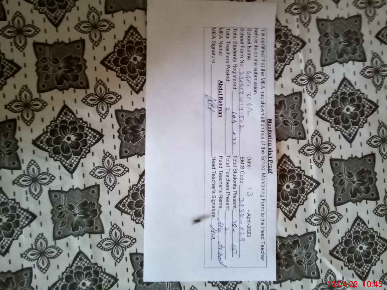 | Name: At**** Ar**** Designation: (School Headmaster's/Headmistress's) PST Phone/Cell Number: 03**** |