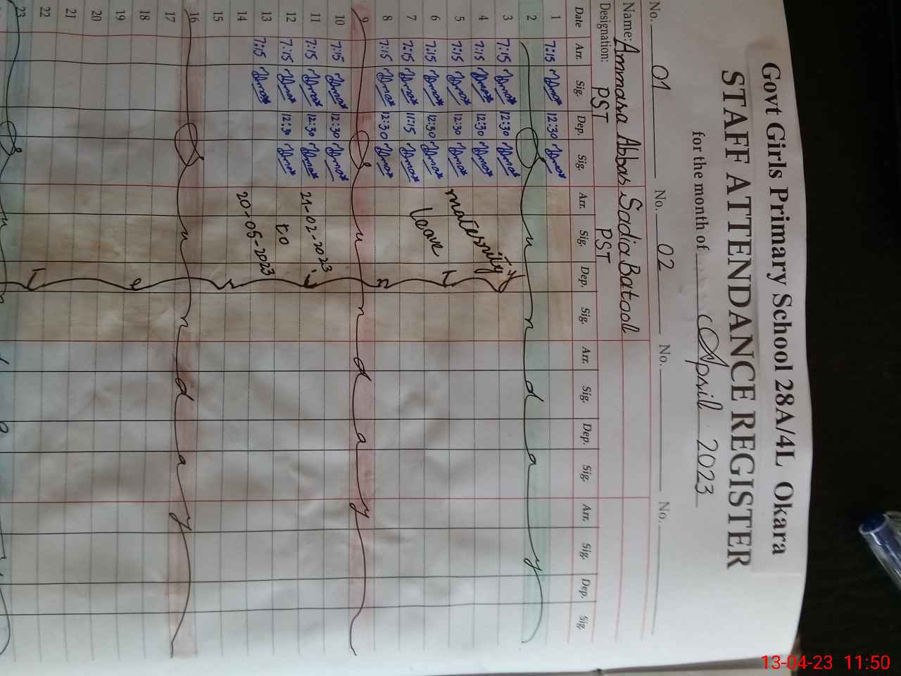 | 35**** | Sa**** Ba**** | PST | Regular | 31 | 0 | 0 | 31 | 0 | 0 | 0 | 0 | 0 | Maternity |