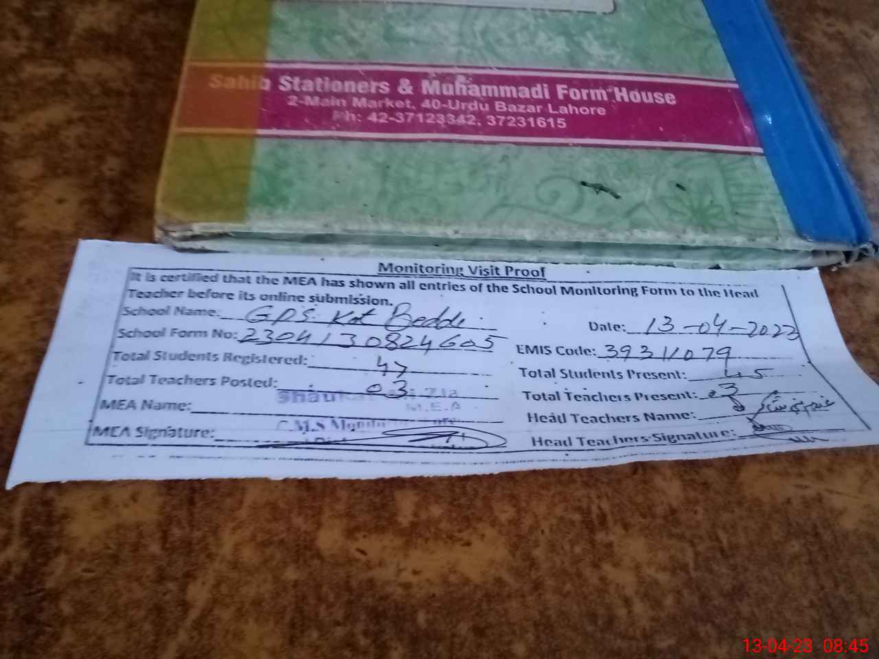 | EMIS Code: 39311079 | Name of School: GPS KOT BEDI (PAKKAY NARAIN) | |||