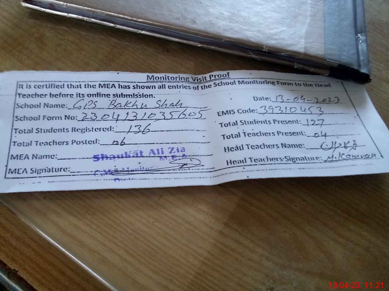 | EMIS Code: 39310453 | Name of School: GPS BAKHU SHAH | |||