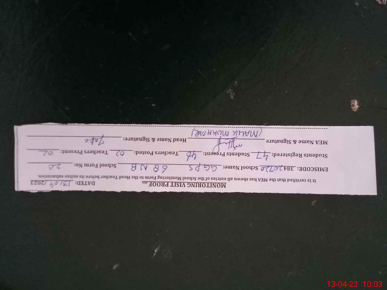 | Certified that this School was Inspected by the Undersigned MEA/DMO Today and the Information Stated Above is as Per Record. | |||||