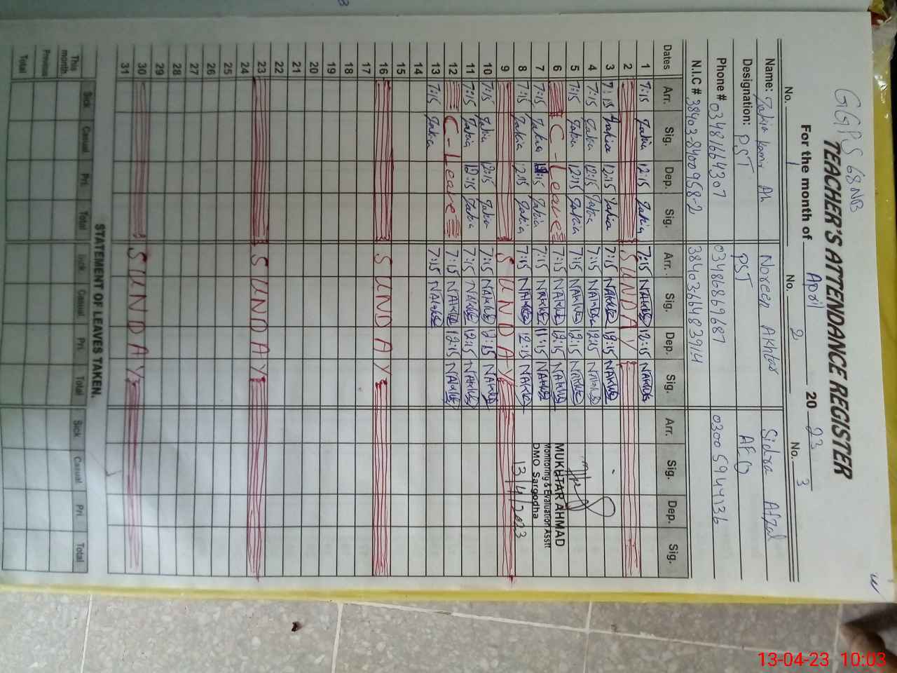 | Name: Za**** Ka**** Al**** Designation: (School Headmaster's/Headmistress's) PST Phone/Cell Number: 03**** |