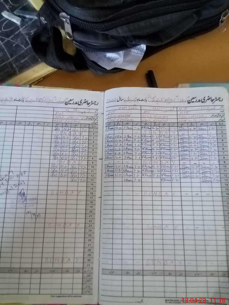 | CNIC | Full Name | Designation | R/C | Absence During Last Calender Month |