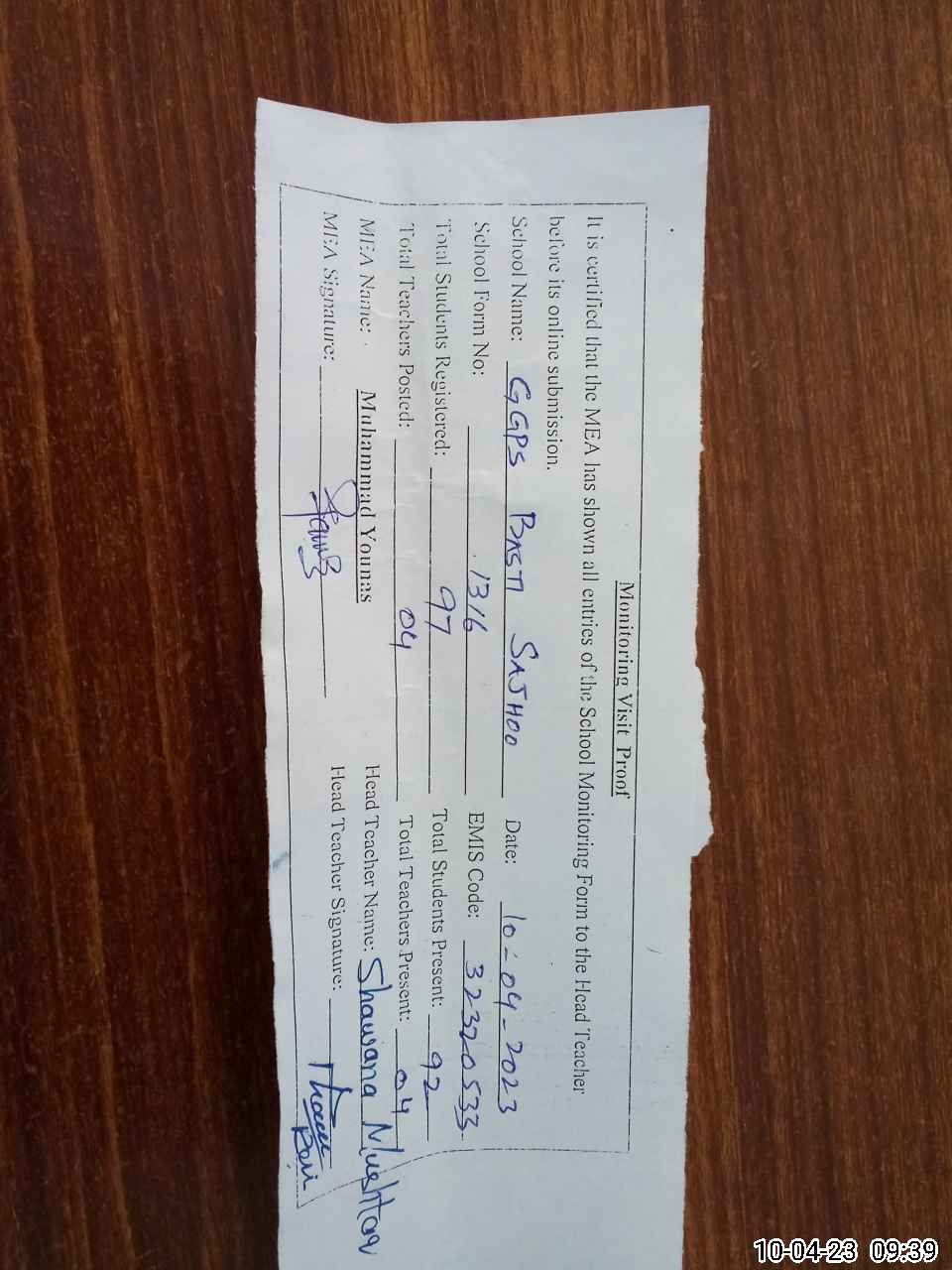 | EMIS Code: 32320533 | Name of School: GGPS BASTI SAJHOO WALA | |||
