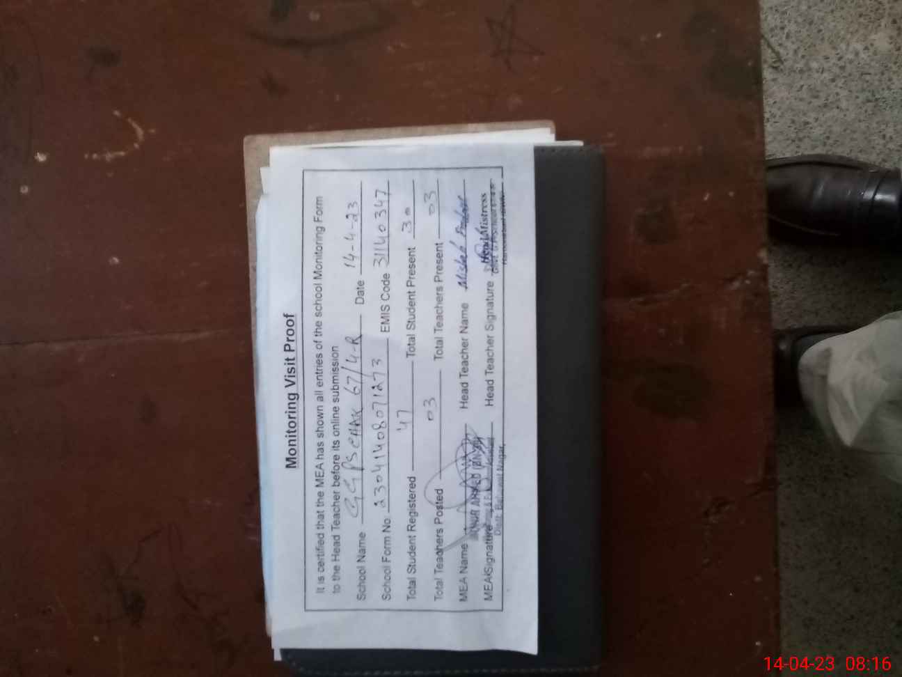 | Attendance Register | Head Teacher | MEA with School | Visit Proof |