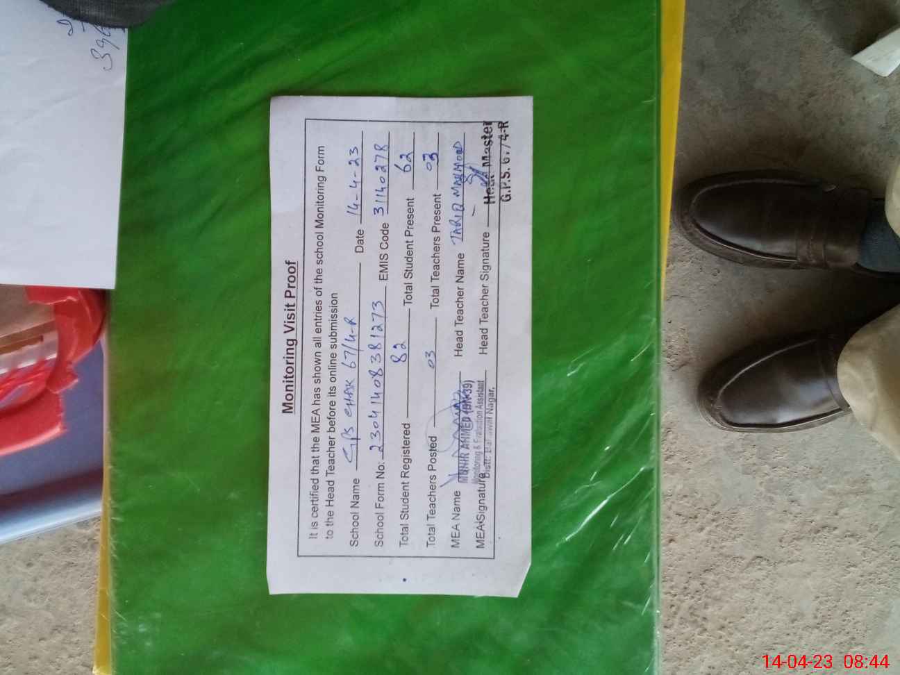 | Attendance Register | Head Teacher | MEA with School | Visit Proof |