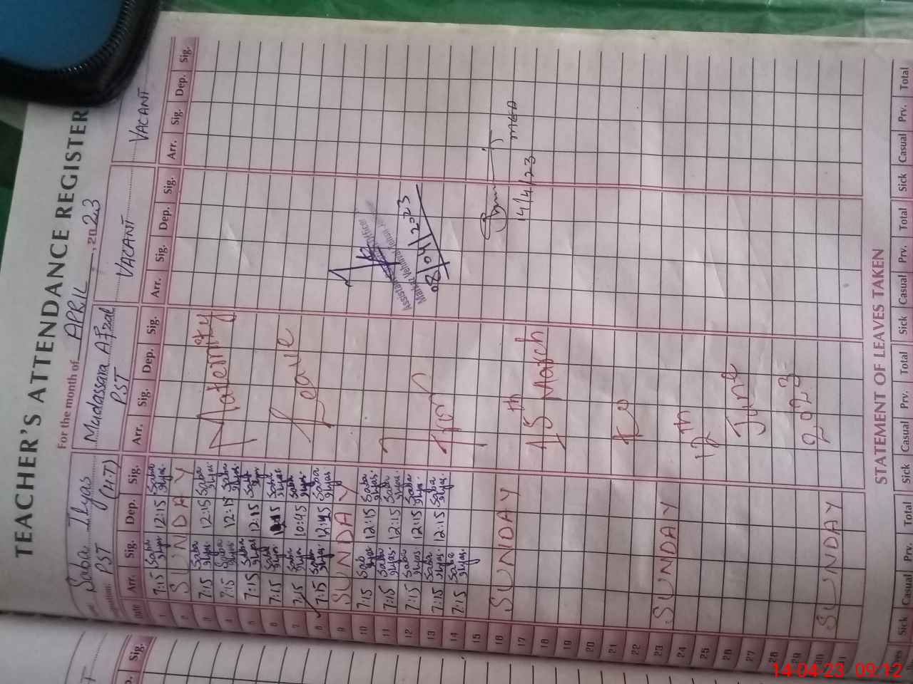 | 36**** | Mu**** Af**** | PST | Regular | 0 | 0 | 0 | 0 | 0 | 0 | 0 | 0 | 0 | Maternity |