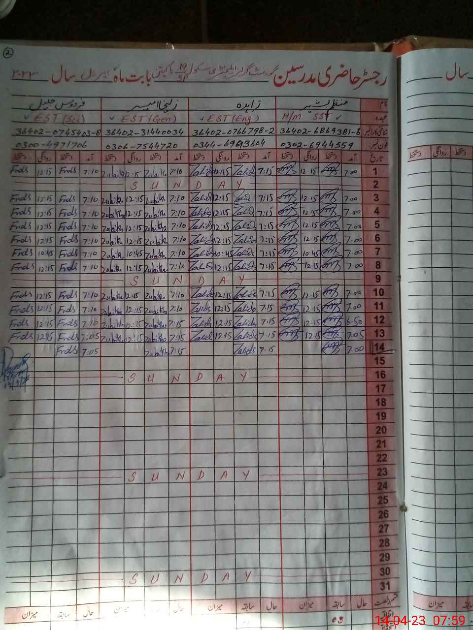 | Name: MU**** BA**** Designation: (School Headmaster's/Headmistress's) S.S.T.(GENERAL) Phone/Cell Number: 03**** |